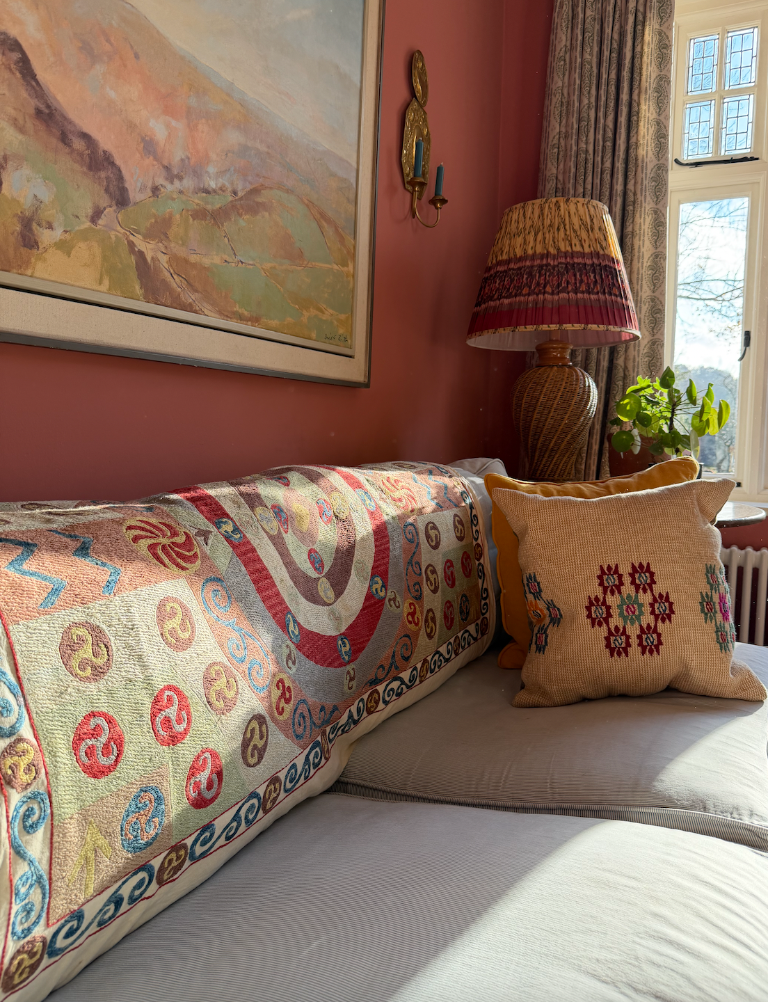 Suzani is a traditional Oriental embroidery and the word "Suzan" is derived from “Needle” in Persian language. If you would like to know more about these beautiful creations you can read my Blog 'Styling with Suzanis'.