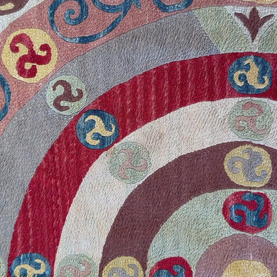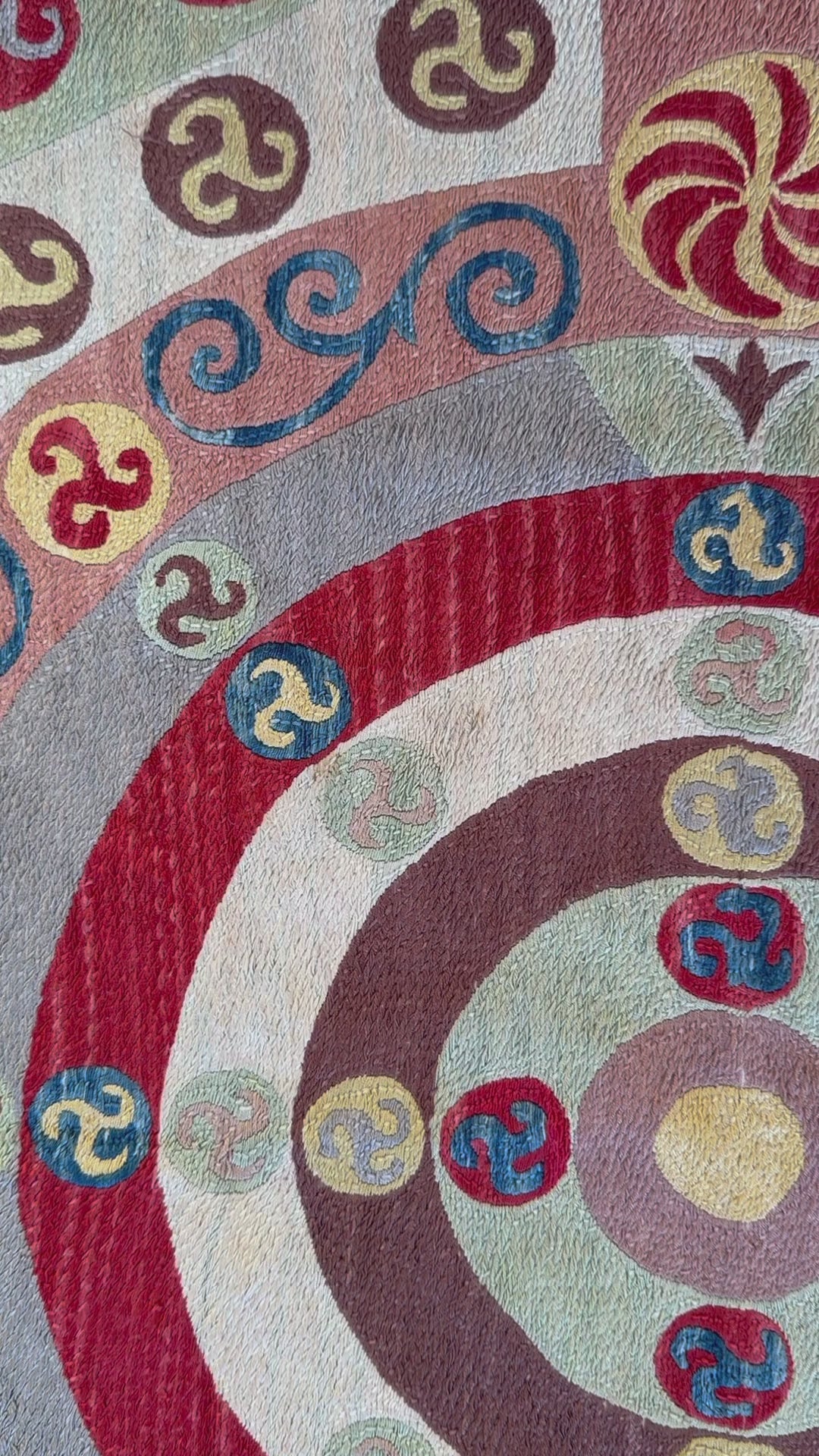 This authentic Uzbekistani Suzani fabric brings a piece of history and culture into your home, allowing you to indulge in its captivating beauty and exceptional artistry.