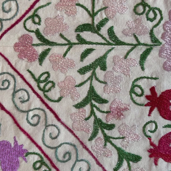 Whether you're seeking a bold statement piece or a delicate accent, this Suzani fabric delivers both in spades. Its ability to blend seamlessly into any decor style, be it contemporary, bohemian, or eclectic, is truly remarkable.