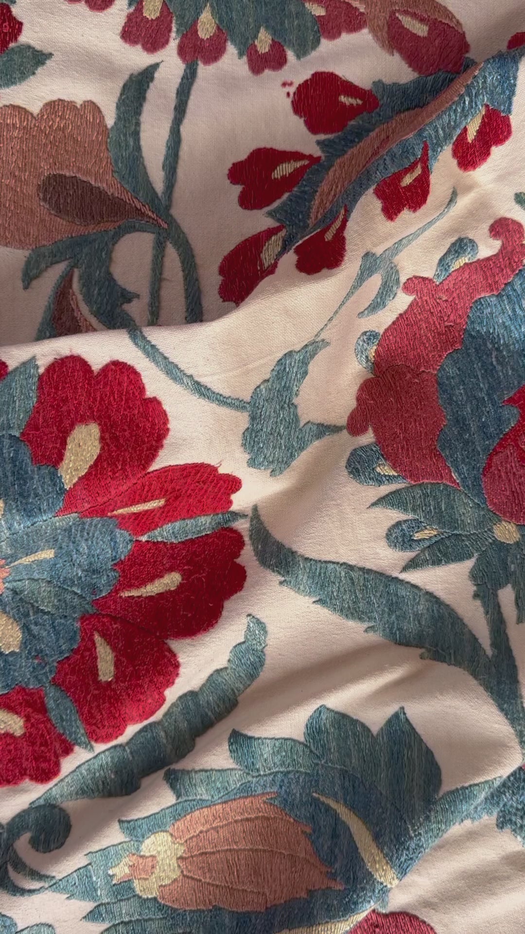 This authentic Uzbekistani Suzani fabric brings a piece of history and culture into your home, allowing you to indulge in its captivating beauty and exceptional artistry.